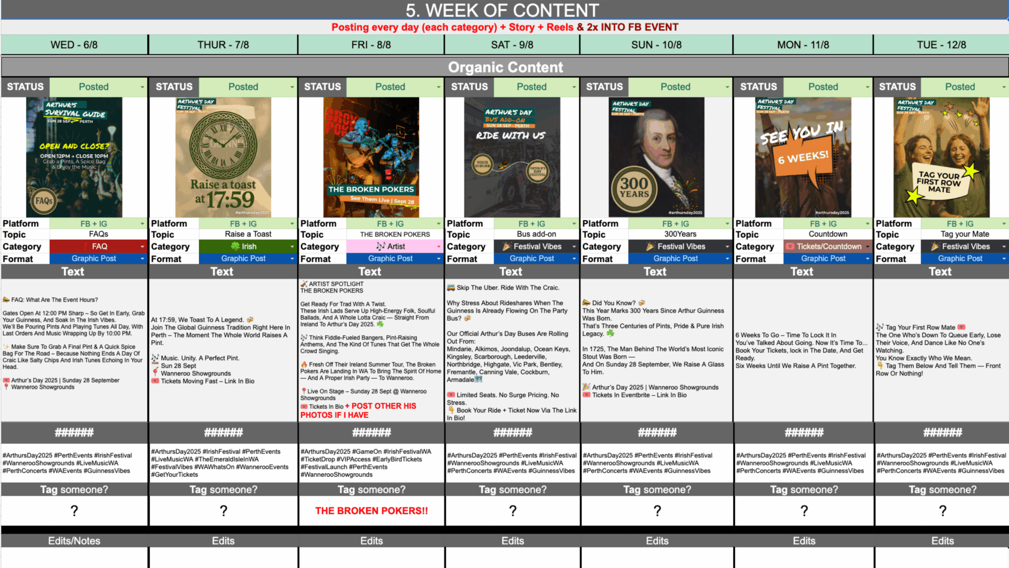 Content Calendar: all colour-coded and tracked – nothing slips through.